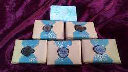 When I found a good recipe for soap dough this was one of the first soaps I designed, utilizing natural oxide colours in bold layers to contrast the fabulous flowers (although my sculpting skills need a bit more work). I used a fork to create texture between the layers that somewhat resembles the reaching fingers of spring plants pushing up through the layers of the earth. I had originally planned to cut the bars much smaller, giving each one half a flower, but when it came to it I just couldn't cut them down... so these bars are HUGE!